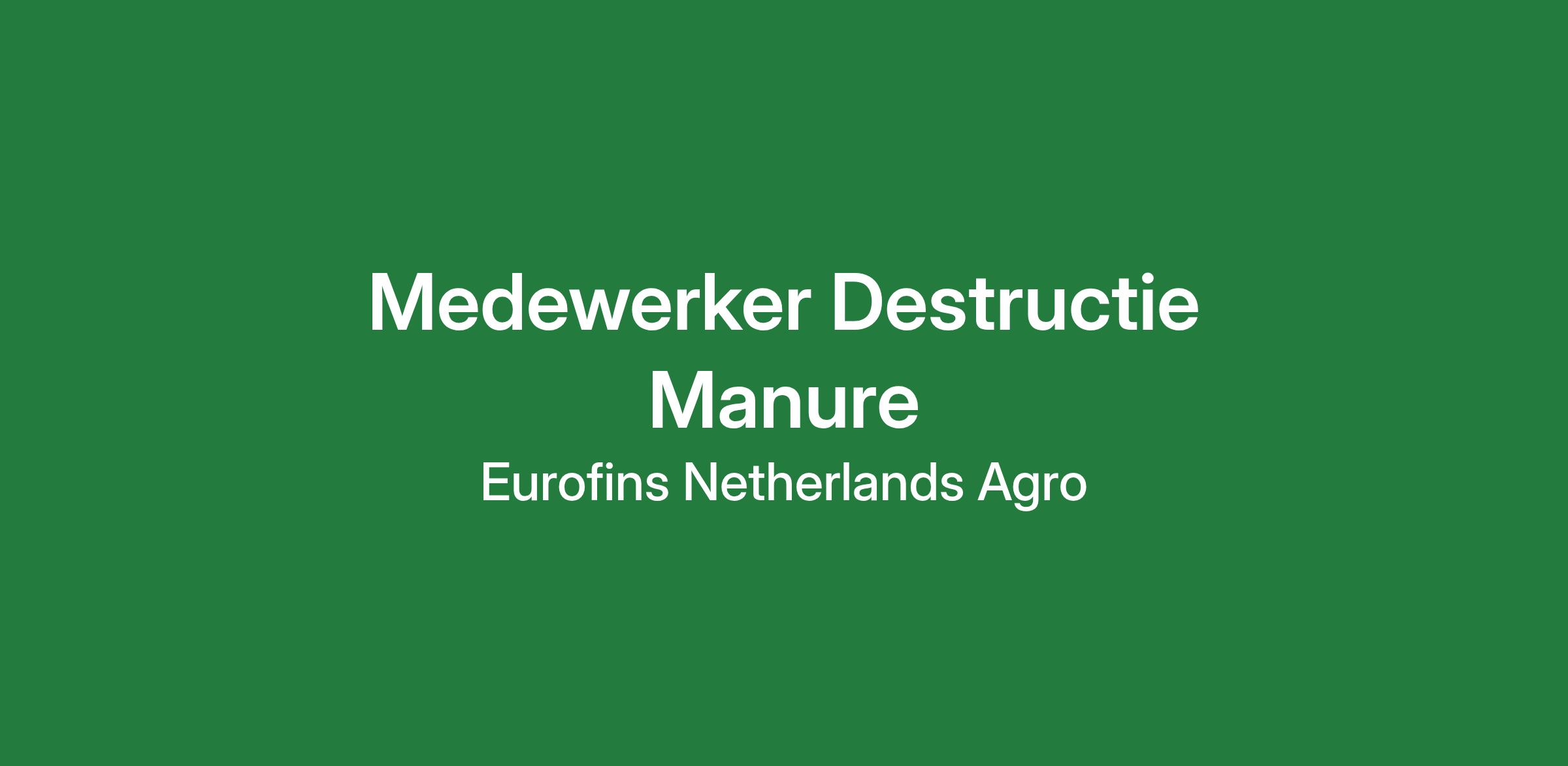 Voor het team Destructie & Extractie zoekt Eurofins Agro een Medewerker Destructie Manure.